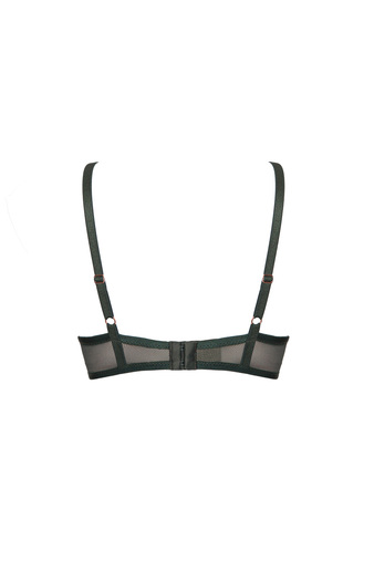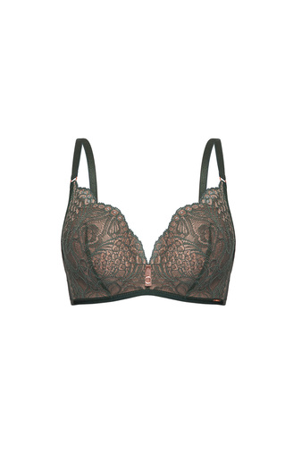 Бескаркасный кружевной бюстгальтер Lusso Super P-UP с формованными чашками. Внутренняя сторона чашки проложена хлопковым трикотажем. Бретельки регулируются по длине, на спине застежка на крючки-петли.