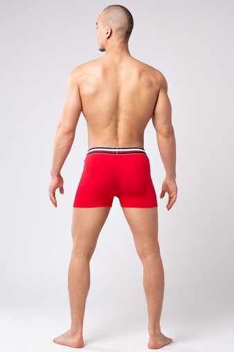 Мужские боксеры из мягкого хлопкового трикотажа необыкновенно комфортны. Брендированная резинка с вывязанным логотипом на фоне сине-бело-красных полос. Двухслойный гульфик, дополнительная вставка для