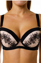 Бюстгальтер с формованными чашками из тонкого поролона, выполнен из эластичной сетки с вышивкой и эластичного полотна. Украшение: металлический медальон с логотипом COQUETTE REVUE. Состав: ПА 85%, эл