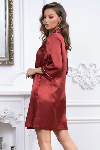 Рубашка Mia-Mella с центральной застежкой на пуговицы на пуговицах с рукавами длиной 3/4, выполнена из искусственного шелкового полотна с атласным блеском. Низ рукавов, борт и воротник обработаны атласными кантами. Белье Mia-Mella выполнено из современных вискозных и хлопковых тканей, дополненных кружевной отделкой и стильными аксессуарами. Современное, модное и удобное, белье Mia-Mella способствует улучшению качества ежедневного отдыха женщины благодаря продуманной конструкции, натуральным материалам, аккуратному пошиву и бережному, внимательному отношению к деталям. Состав материала изделия: полиэстер 100%. Страна производителя: Италия.