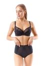 Бюстгальтер пуш-ап от французского бренда Coquette Revue – нежная и романтическая модель, корректирующая линии тела. Формованные чашечки на каркасах создают идеальную округлую форму груди и обеспечивают комфортную посадку. Вкладыши пуш-ап съемные. Модель выполнена из эластичного сетчатого полотна и гладкой микрофибры, создающих контрастный декор. Снизу есть узкий пояс из эластичного полотна с микрофиброй. Тонкие бретели регулируются по высоте, сзади есть застежка на крючках. В передней части есть маленький металлический медальон с логотипом. Состав ткани: полиамид – 85%, эластан – 15%. Чокер в комплект не входит и представлен в каталоге бренда отдельно.