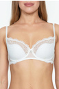 Бюстгальтер выполнен из эластичного полотна и эластичного кружева. Нижние детали чашек продублированы поролоном с хлопком. На боковых деталях стана корректирующие пластины, позволяющие боковой части б