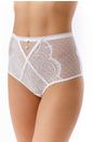Трусы-макси с высокой линией талии выполнены из эластичного кружева и эластичной сетки. Украшение металлические пуговицы, к которым при желании можно пристегнуть чокер.