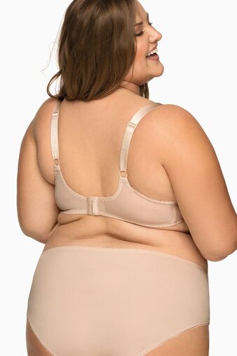 Чашка с тройным членением и двойная усиленная боковая часть собирают грудь, придают бюсту приподнятый и округленный вид. Подкладка из мягкой прочной сетки в нижней части чашки добавляет легкости и комфорта при ношении. Двойные подвижные боковые косточки гарантируют адаптацию к движению тела и повышают комфорт при ношении. Тройной крючок.