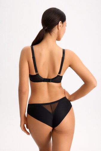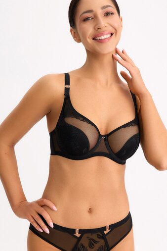 Модель собирает грудь ближе к центру и придаёт ей более округлую форму без излишнего объёма. Внутренняя часть чашек выполнена из мягкого, деликатного к коже материала, который не натирает и не вызывает дискомфорта при длительной носке.