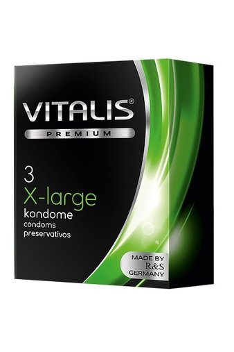VITALIS предлагает презервативы, прошедшие проверку и получившие сертификат качества. Немецкие презервативы премиум-класса. Прошли многоступенчатую проверку качества. В производстве используется только высококачественный натуральный каучуковый латекс. Увеличенного размера, со смазкой и накопителем. Ширина: 57 мм. Длина: >190 мм. Толщина стенки: 0.07 мм. Смазка: силикон. Форма: цилиндрическая.