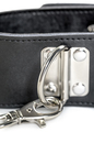 Кожаный ошейник с поводком и черной отделкой, переходящей в ремешок. С 5 кольцами. Длина поводка - 50 см.