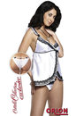 Соблазнительный атласный комплект с черным кружевом. Немного расширяющийся топ с разрезом спереди. Регулируемые бретельки. Производство: Германия. Материал: 100% полиэстер.
