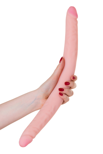 Двойной фаллоимитатор, изготовленный из материала, который правдоподобно напоминает кожу человека. Имеет ярко выраженные головки, рельефную поверхность в виде прорисованных вен. Донг приятный на ощупь, гибкий и упругий. Гибкость этого красавчика дает возможность женщине использовать его для соло-забав для двойного проникновения. Длина - 43 см, диаметр - 3,6 см.