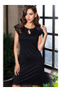 Туника средней длины (до колен) полуприлегающего силуэта из нейлона и кружевного полотна. Горловина полочки и спинки, наклонные декоративные линии на кружевной V-образной вставке спинки, швы втачивани