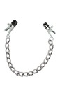 Зажимы на соски являются оригинальным, неповторимым аксессуаром, используемым в сексуальных играх БДСМ. Соски являются очень сильной эрогенной зоной, у многих людей они более чувствительны, чем половой член или клитор, и прикосновение к ним всегда вызывает прилив огромной волны возбуждения. Зажимы для сосков используются как женщинами, так и мужчинами не только для повышения чувственности, но и для создания пикантного образа, который необходим для ролевых игр БДСМ. Зажимы на соски, соединенные между собой металлической цепочкой. Эти зажимы для сосков имеют съемные защитные покрытия и соединены крепкой цепью. Интенсивность давления каждого зажима можно регулировать с помощью винтов. Степень сжатия сосков плавно регулируется при помощи маленьких винтиков, благодаря чему можно подобрать максимально допустимый эффект. Крепкая металлическая (хромированное покрытие) цепочка длиной 39 см. Общая длина 43.5 см. Вес 100 гр.