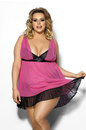 Оригинальная сорочка выполнена в эффектном сочетании черного и розового материалов. Она отлично подчеркивает грудь, обеспечивая ей идеальную поддержку. Под грудью расположена красивая атласная вставка