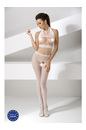 Эротический боди-комбинезон сетка из итальянского эластичного, прочного, материала представляет собой топ соединенный с чулками на подвязках. Тянущиеся свойства ткани позволяют надеть комбинезон дамам вплоть до 52 размера. Верхняя часть выреза халтер и «колготки» выполнены из мелкой сеточки, лиф и область талии из вертикально расположенных шнурочков. Плечи и спина открытые. На интимной зоне, включая ягодицы вырез. Контактный чулок на тело упакован в красивую картонную коробочку и отлично подходит в качестве подарка.
