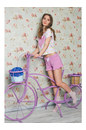 Разноцветная футболка с аппликацией в виде сердца и нежно-сиреневые шорты с бантиком