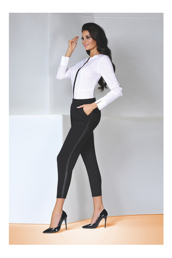 Элегантные и модные женские леггинсы-брюки укороченного дизайна плотностью 200 den. Брючки выполнены из эластичного материала с карманами и боковыми лампасами. Леггинсы - это простой, но эффективный с