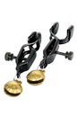 Металлические зажимы для сосков с этническим рисунком добавят перчинки в ваши игры. Сами зажимы создадут дополнительную стимуляцию, а колокольчики озвучат каждое движение. Сила сжатия регулируется болтиком. Вес нетто/брутто: 0,043/0,063 кг. Размеры упаковки (ДхШхВ): 3 см x 9 см x 15 см.