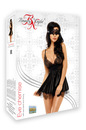 Черная атласная сорочка с обворожительным кружевом сделает женское тело настоящим центром притяжения мужского внимания. Белье достаточно свободно, что позволяет ему идеально садиться практически на любой размер. Обнаженные плечи, регулируемые бретели, соблазнительные кружева по низу сорочки, а также невесомые трусики и кружевная повязка на глаза сведут с ума от желания любого мужчину. Материал: ПЭ 88%, эластан 12%.