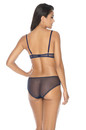 Бюстгальтер на каркасах. Чашки на тонком поролоне с пуш-ап вкладышами. Изделие выполнено из эластичной сетки в сочетании с трикотажем синего цвета. Бретельки регулируются по длине, на спине застежка
