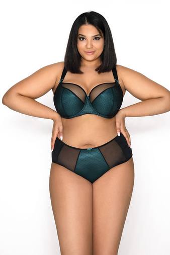 Красивый, элегантный бюстгальтер Nori с чашкой на тонком поролоне, предназначенный специально для женщин с большой грудью. Чашки изготовлены из нежного материала изумрудного цвета и черной сеточки. Бр