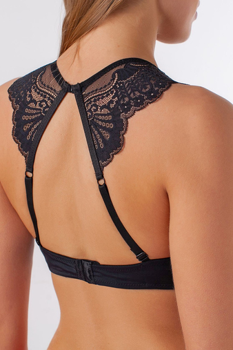 Эффектный кружевной бюстгальтер "браллет" с уплотненными чашками на косточках. Бретели регулируются по длине. На спинке застежка на крючки-петли. Страна производителя: Франция. Производитель: Coquet