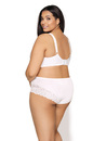 Бюстгальтер выполнен из кружева с красивым цветочным узором. Чашки на тонком поролоне и каркасах. Кружево нежно окутывает грудь и плавно переходит в широкие бретели. Между чашек украшение в виде атласного бантика. Бретели регулируются по длине. На спине застежка на крючки-петли. Состав материала изделия: полиамид 66%, хлопок 18%, ПУ 10%, эластан 6%.