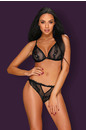 Пикантный комплект нижнего белья выполнен из эластичной сеточки и кружева. Лиф мягкий без косточек с разрезами, бретели регулируются по длине, на спинке удобная застежка. Трусики с вырезом на ягодицах
