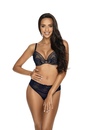 Бюстгальтер с съемным push-up. Форма чашки придает бюсту естественную соблазнительную форму. Чашечки украшены красивым синим кружевом, изнутри выполнены из хлопковой ткани бежевого цвета. Боковины из эластичной сетки, усилены боковыми косточками. Съемные регулируемые лямки. На спине застежка на крючки-петли. Состав: ПА 25%, ПУ 25%, ПЭ 25%, ХЛОПОК 21%, ЭЛАСТАН 4%. Бренд: MAT. Страна: ПОЛЬША.