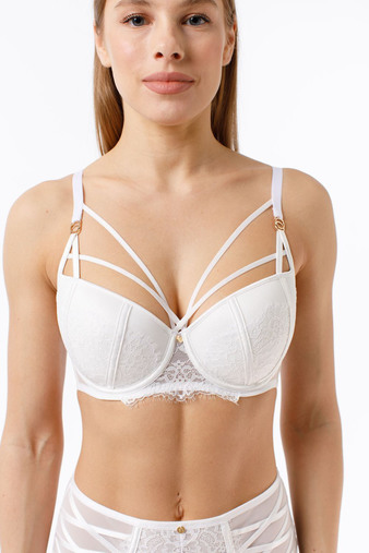 Белье Coquette Revue — это успешное сочетание традиций искусства создания женского белья и новых, всегда актуальных тенденций. Белье бренда, следуя французским традициям стиля, даёт возможность женщинам почувствовать себя счастливыми, ощутить свою индивидуальность, примерить на себя все новые и новые образы. Бюстгальтер на каркасах с формованными чашками с вкладышами пуш-ап, внутренняя сторона проложена хлопковым трикотажем, снаружи чашки украшены кружевом. Особую пикантность модели придают эластичные стреп-ленты. Состав материала изделия: 65% полиамид, 10% эластан, 25% хлопок. Производитель: Coquette Revue. Страна производителя: Франция.