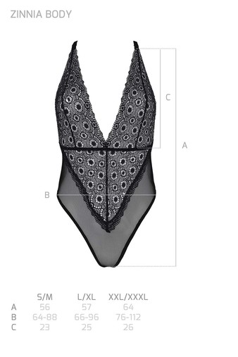 Потрясающее боди из полупрозрачного материала с кружевной цветочной вставкой спереди. Глубокий вырез декольте подчеркнет форму груди. Рекомендуется ручная стирка. Производитель: Passion. Состав