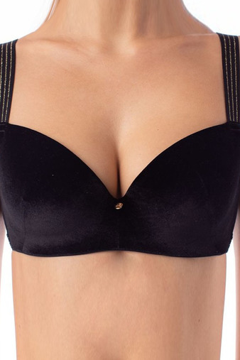 Формованный бюстгальтер на каркасах, изготовлен из бархатистого полотна с золотой нитью и прозрачной вуалью. Бюстгальтер необыкновенно соблазнительный, мягкий и уютный, но в то же время "дерзкий". На