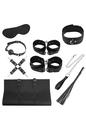Набор для БДСМ-игр из 9 предметов. В набор входит: сумка, поводок, ошейник, наручники, наножники, маска на глаза, крестообразный фиксатор с карабинами, плетка, кляп. 1. Сумочка для БДСМ-игрушек. 2.