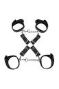 Набор для БДСМ-игр из 9 предметов. В набор входит: сумка, поводок, ошейник, наручники, наножники, маска на глаза, крестообразный фиксатор с карабинами, плетка, кляп. 1. Сумочка для БДСМ-игрушек. 2. Металлический поводок с кожаной ручкой. 3. Ошейник с металлической вставкой. 4. Наручники с металлической вставкой и ремешком-фиксацией. 5. Наножники с металлической вставкой и ремешком-фиксацией. 6. Маска на глаза. 7. Фиксатор с металлическими вставками. 8. Плеть. 9. Кляп-шарик. Материал: искусственная кожа.